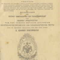 Σπάνια παρτιτούρα βυζαντινής μουσικής. Σελ. 609, σχήματος 8ου. Περιέχει το αργοσύντομο (στιχηραρικό) και σύντομο (ειρμολογικό) Αναστιματάριο κ.ά. Στη σελ. [1]-440 το στιχηραρικό Αναστασιματάριο. Από σελ. [441]-538 το σύντομο ειρμολογικό Αναστασιματάριο, με συνεχή αρίθμηση και δίχως ιδιαίτερη προμετωπίδα. Στην αρχή τα εξής: Αναστασιματάριον Σύντομον Ιωάννου Πρωτοψάλτου της του Χ. Μ. Εκκλησίας, σελ. [539]-541 αντί Τιμιωτέρας, η ΄Θ ωδή της Κυριακής των Βαϊων, Θωμά, Αναλήψεως, σελ. [547]-564 οι ακολουθίες του Ακαθίστου, της μικρής και μεγάλης παράκλησης, σελ. [598]-602 μάθημα σύντομον, σελ. [603]-607 καταβασίες σε διπλό χρόνο. Σελ. [608]-609 "Πίναξ των περιεχομένων". Πλήρης τίτλος: Αναστασιματάριον νέον αργόν και σύντομον : περιέχον τα Αναστάσιμα του Εσπερινού, Όρθρου, Λειτουργίας μετά των Αναστασίμων Κανόνων, αργών Καταβασιών, Τιμιωτέρων συντόμων, Εωθινών μετά των Αναστασίμων Κανόνων, αργών Καταβασιών, Τιμιωτέρων συντόμων, Εωθινών μετά των Δοξολογιών αυτών, Κατανυκτικών, Μαρτυρικών, Νεκρωσίμων, των τριών ενάτων Ωδών των Βαϊων, της Κυριακής του Θωμά, της Αναλήψεως και των τριών Κανόνων, του Ακαθίστου, των Παρακλήσεων, έτι δε και τας Καταβασίας της Υπεραγίας Θεοτόκου εις διπλούν χρόνον / μελοποιηθέν υπό Πέτρου Λαμπαδαρίου του Πελοποννησίου και Ιωάννου Πρωτοψάλτου της του Χριστού Μεγάλης Εκκλησίας Θεωρήσαντος επιμελώς και ανακαθάραντος τούτο · νυν το έννατον εκδίδοται υπό του υιού αυτού Δ. Ιωάννου Πρωτοψάλτου.