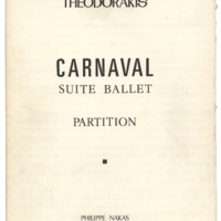 a) sketches with indications b) original score Μ.Th. for piano g) photocopy of autograph transcription for piano by Nikos Astrinidis δ) photocopy of parts of an arrangement for 2 pianos Μ.Th. e) Score with the date Mikis Theodorakis 12.10.1953 and the date SACEM 12/3/56 f) printed score (Nakas Editions) g) movements from autograph parts vnΙ, vnII, va, vc, dbI, dbII of Finale, refers to transparencies of a different, probably later work Mikis Theodorakis h) later version written on computer