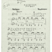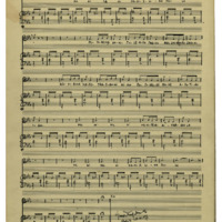 a) sketches b) photocopy of autograph work for voice and piano which includes the songs "April" "Απρίλης'' from Κ31 c)-d) transparency of 2 autographs Mikis Theodorakis with various harmonizations (v, pf) and photocopy of autograph e) transparency of autograph with unfinished orchestration for voice and strings. f) photocopy of printed score (v, pf) with autograph corrections.