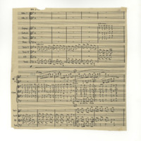 a) sketches, dated 12-1-1956, 5-6-1956, together with a later, Athenian sketch from 1946 b) orchestral score (x2), choral (pp.1-8 more times) c) parts for all instruments and choral score.
