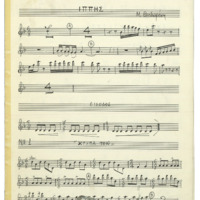 a) typed text b) autograph text and photocopy of autograph Μ.Th. c) plan of the work, orchestration and και discographic registration in autograph and photocopies of autographs Μ.Th. d) sketches and photocopies of sketches e) photocopy of autograph Μ.Th. of complete work (lyrics, melody) f) score (autograph and photocopies of autograph Μ.Th.) g) photocopies of parts, autograph of copyist h) autograph of final score, (see film 3)