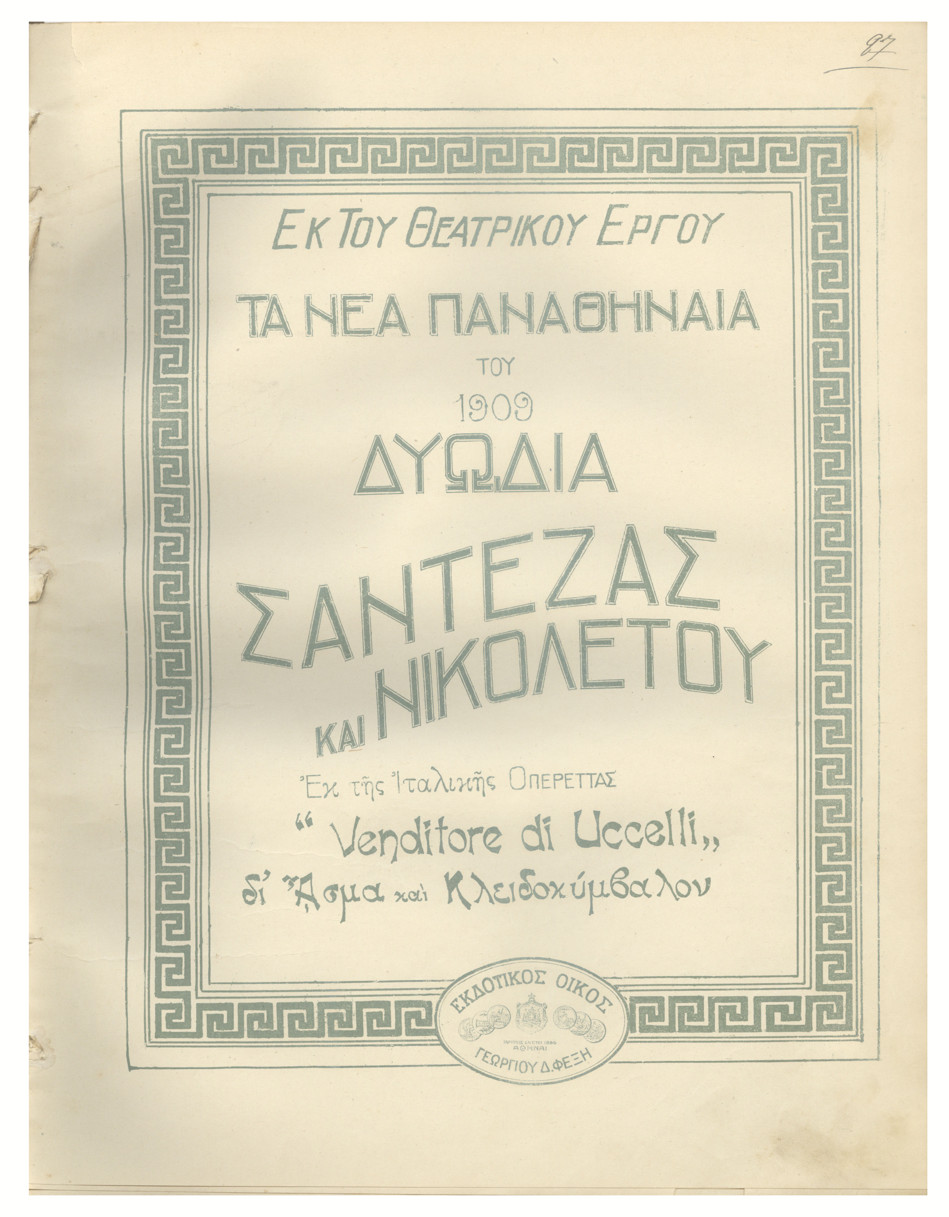 Το έργο είναι από το αρχείο βιβλίων ''Ελληνικά τραγούδια