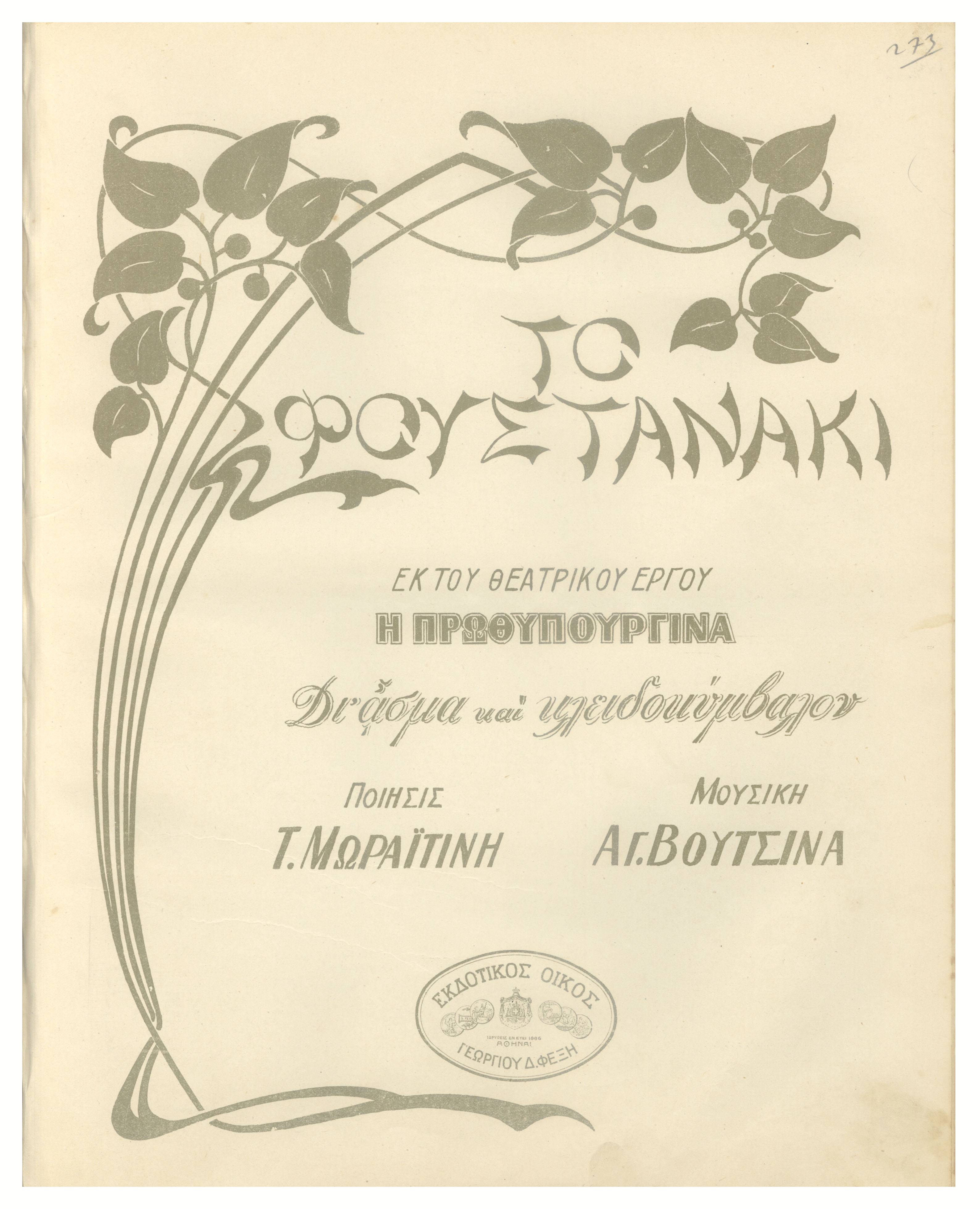 Το έργο είναι από το αρχείο βιβλίων ''Ελληνικά τραγούδια