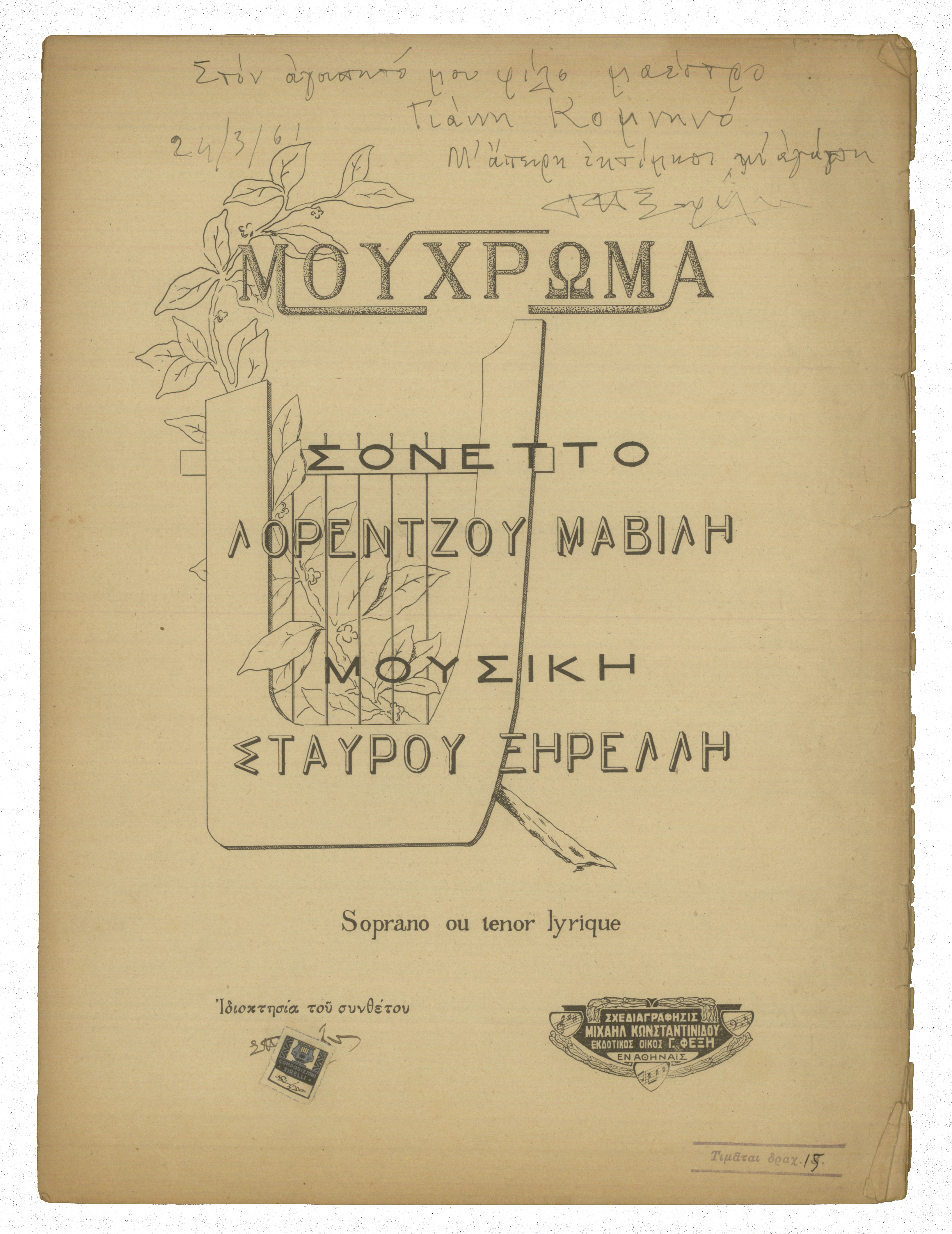 Ιδιόχειρη αφιέρωση του συνθέτη
