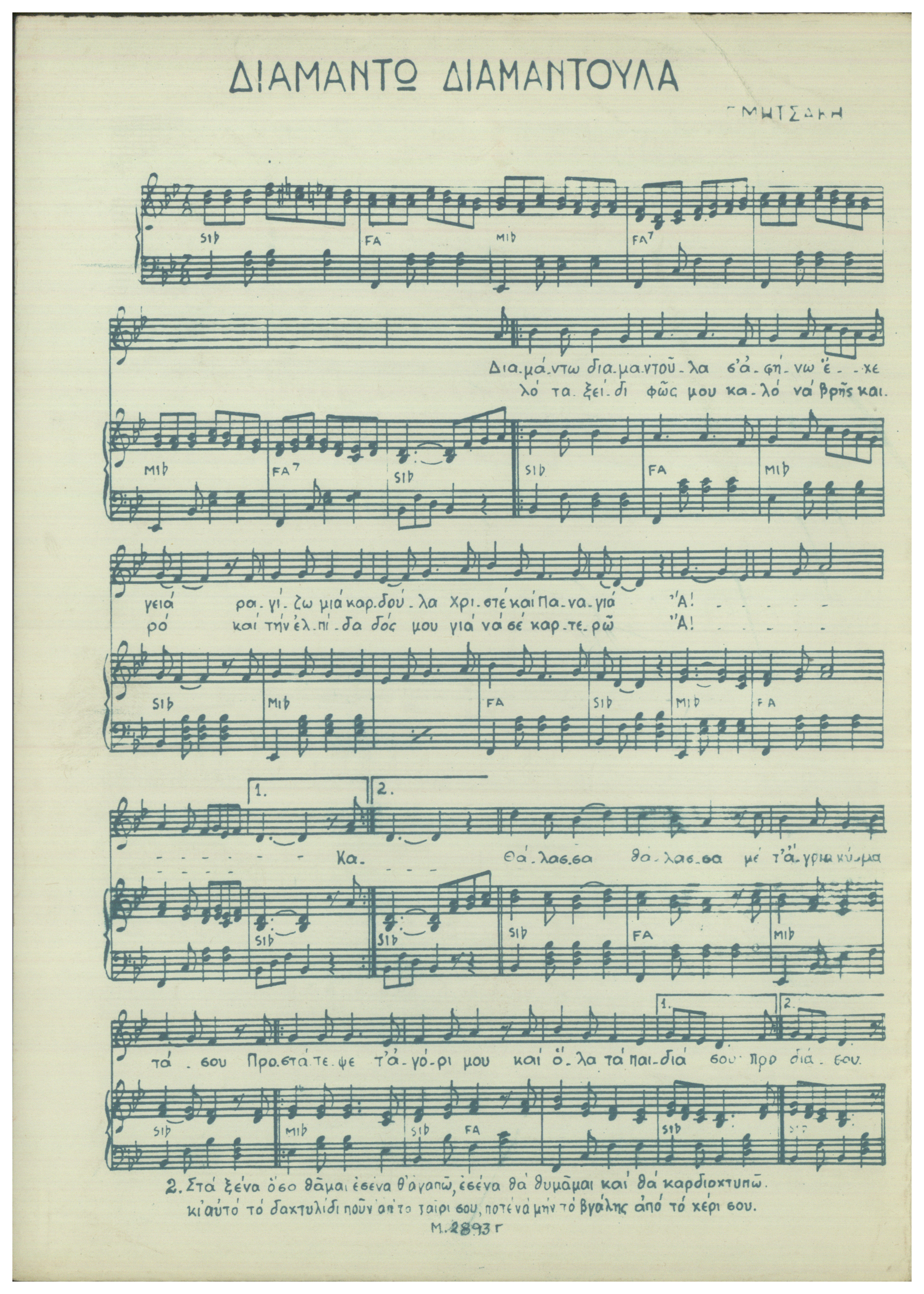 Διαμάντω διαμαντούλα σ` αφήνω έχε γειά