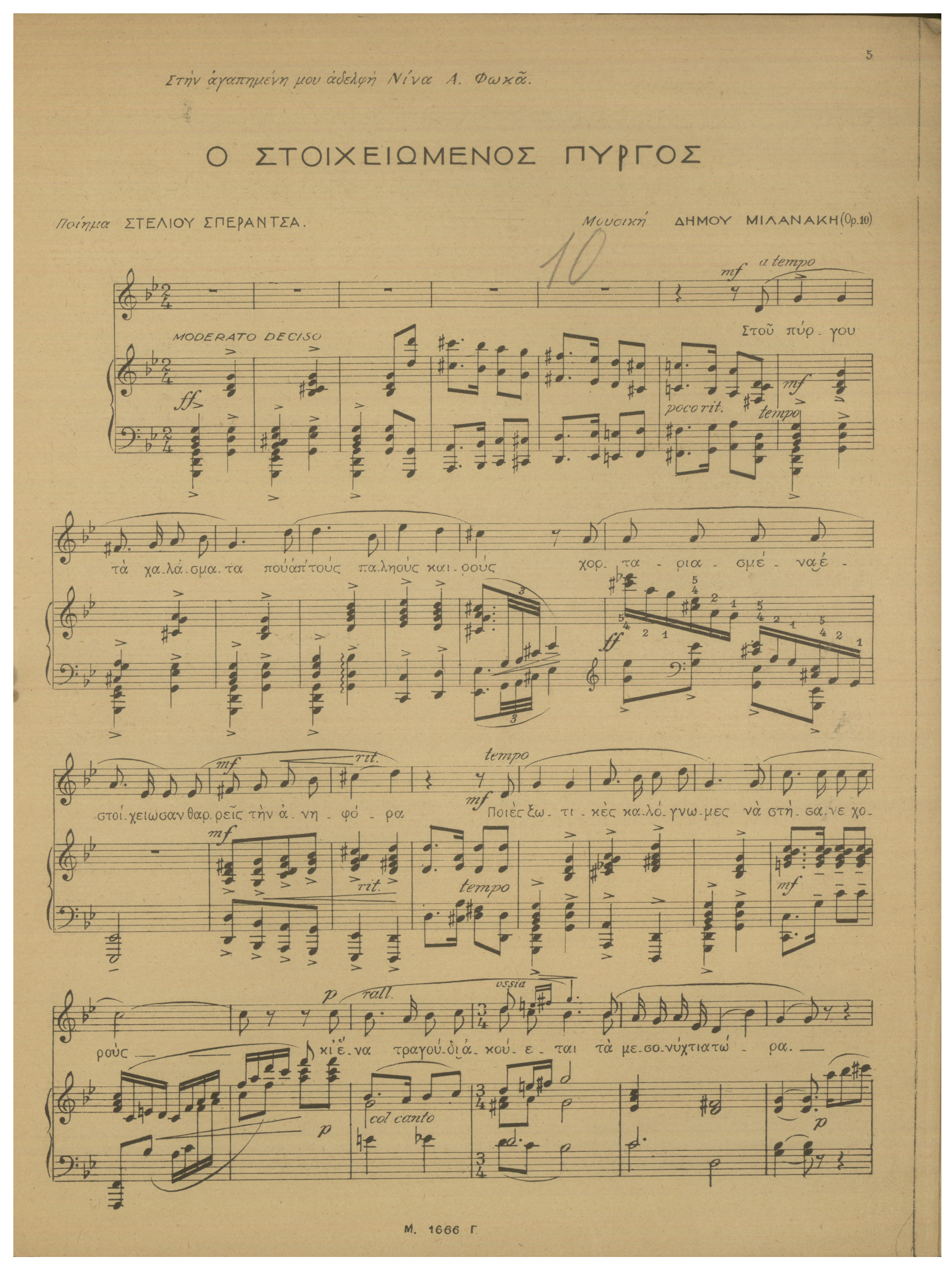 Στου πύργου τα χαλάσματα που απ` τους παληούς καιρούς χορταριαασμένα εστοίχειωσαν