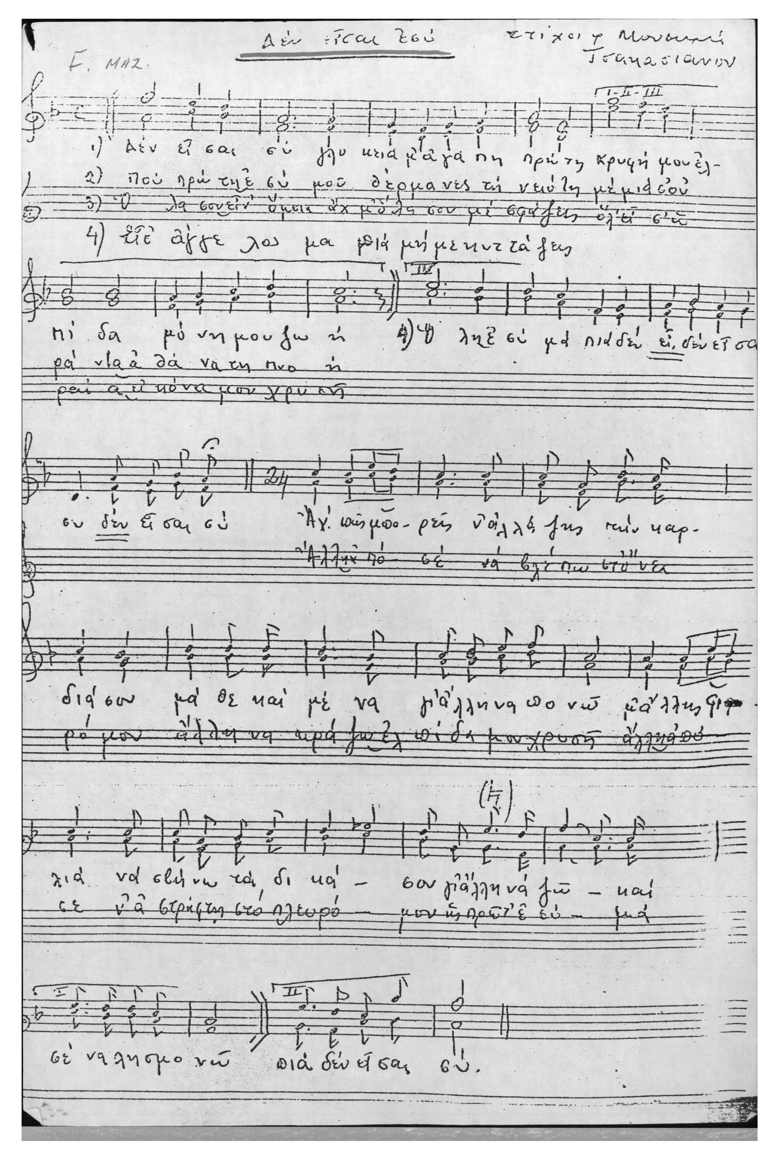 Το τραγούδι υπάρχει σε ένα επιπλέον φωτοτυπημένο αντίγραφο.
