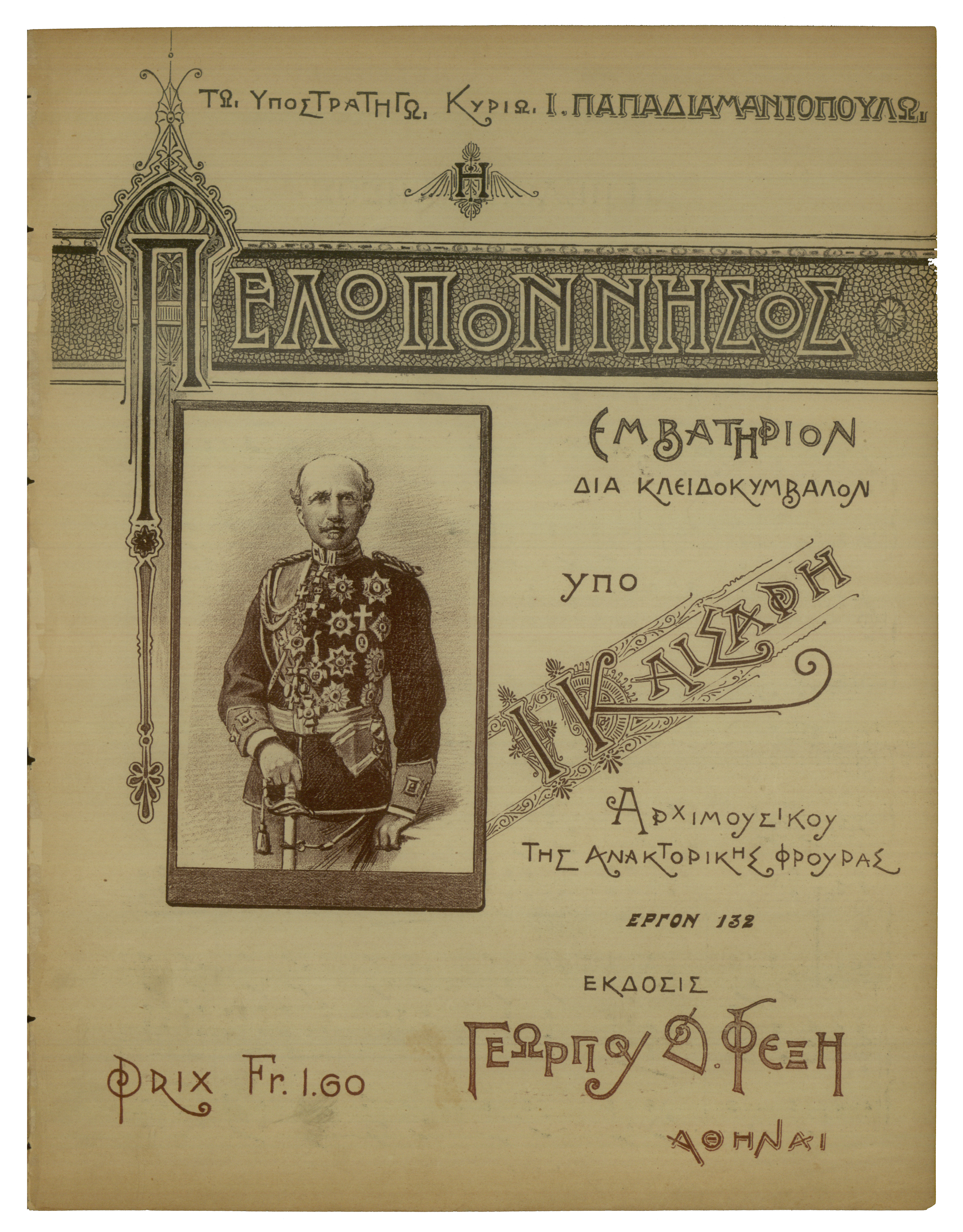 Εμβατήριον δια κλειδοκύμβαλον. Έργον 132. Prix Fr.1.60. Τω υποστρατηγώ Κυρίω, Ι. Παπαδιαμαντόπουλω.