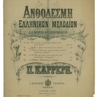 Ανθοδέσμη ελληνικών μελωδιών δια μονόν κλειδοκύμβαλον. Ιδιοκτησία του εκδότου.
