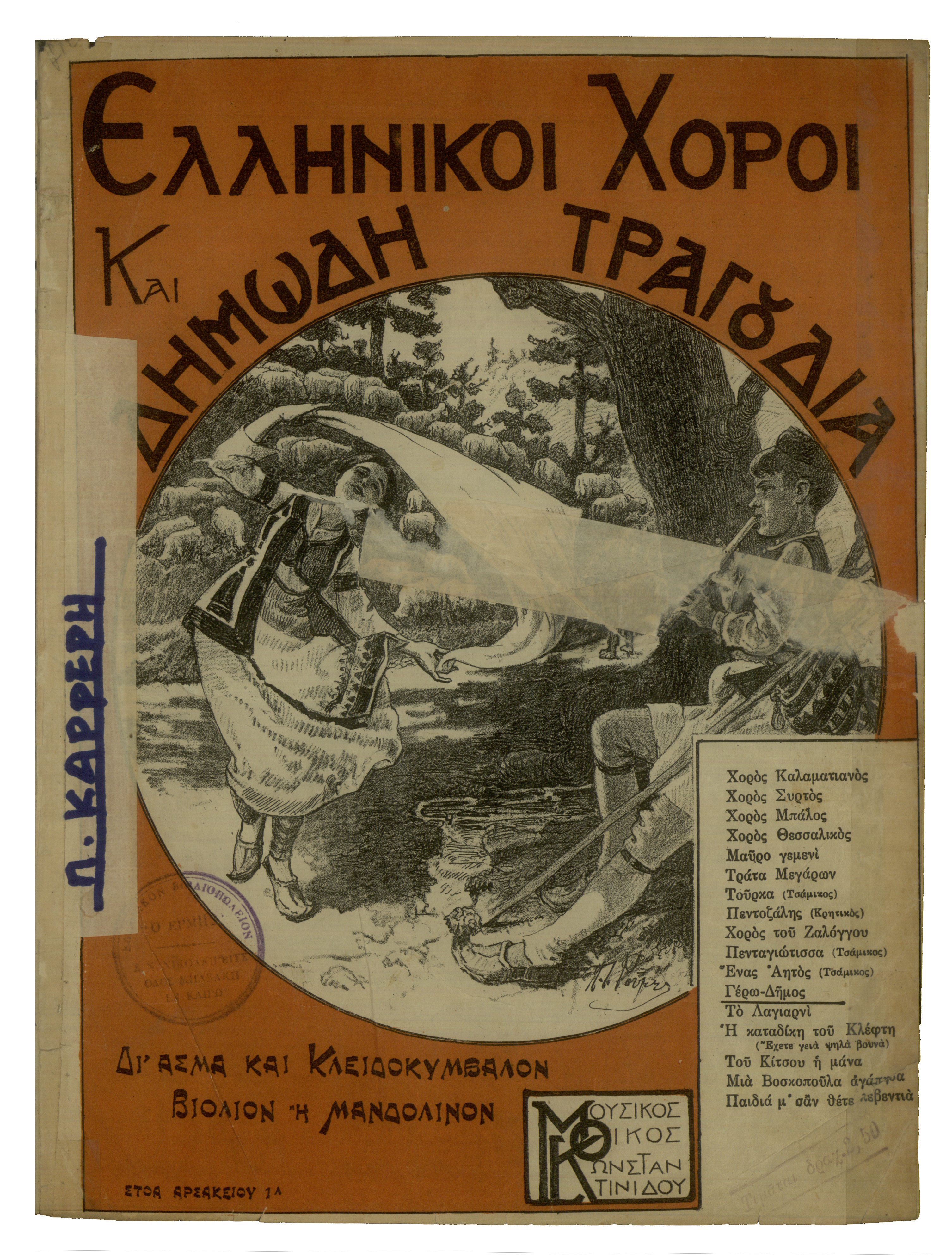 Ελληνικοί χοροί και δημώδη τραγούδια. Δι` άσμα και κλειδοκύμβαλον, βιολίον ή μανδολίνον.