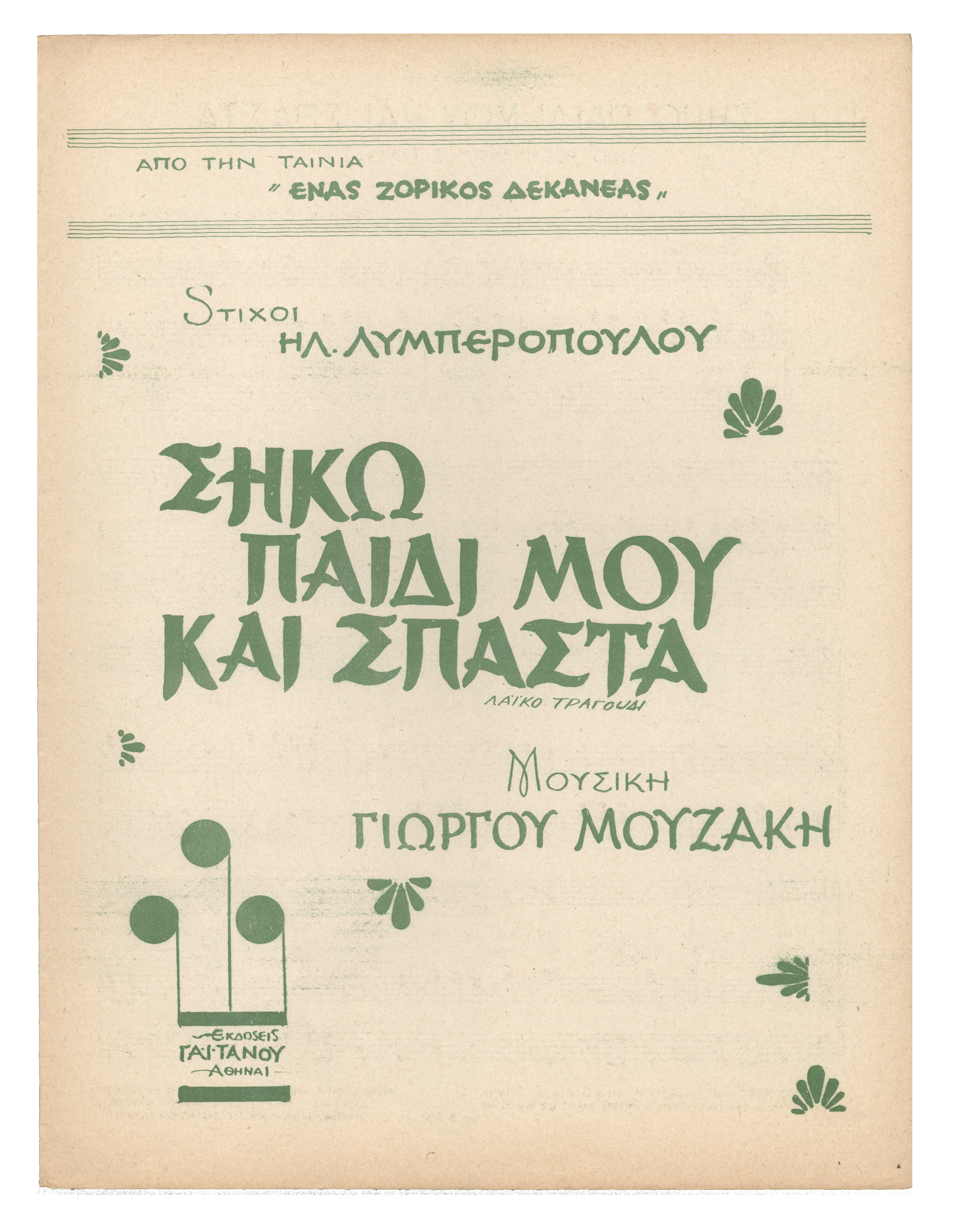 Λαϊκό τραγούδι (Το τραγούδι υπάρχει σε τρία αντίτυπα)