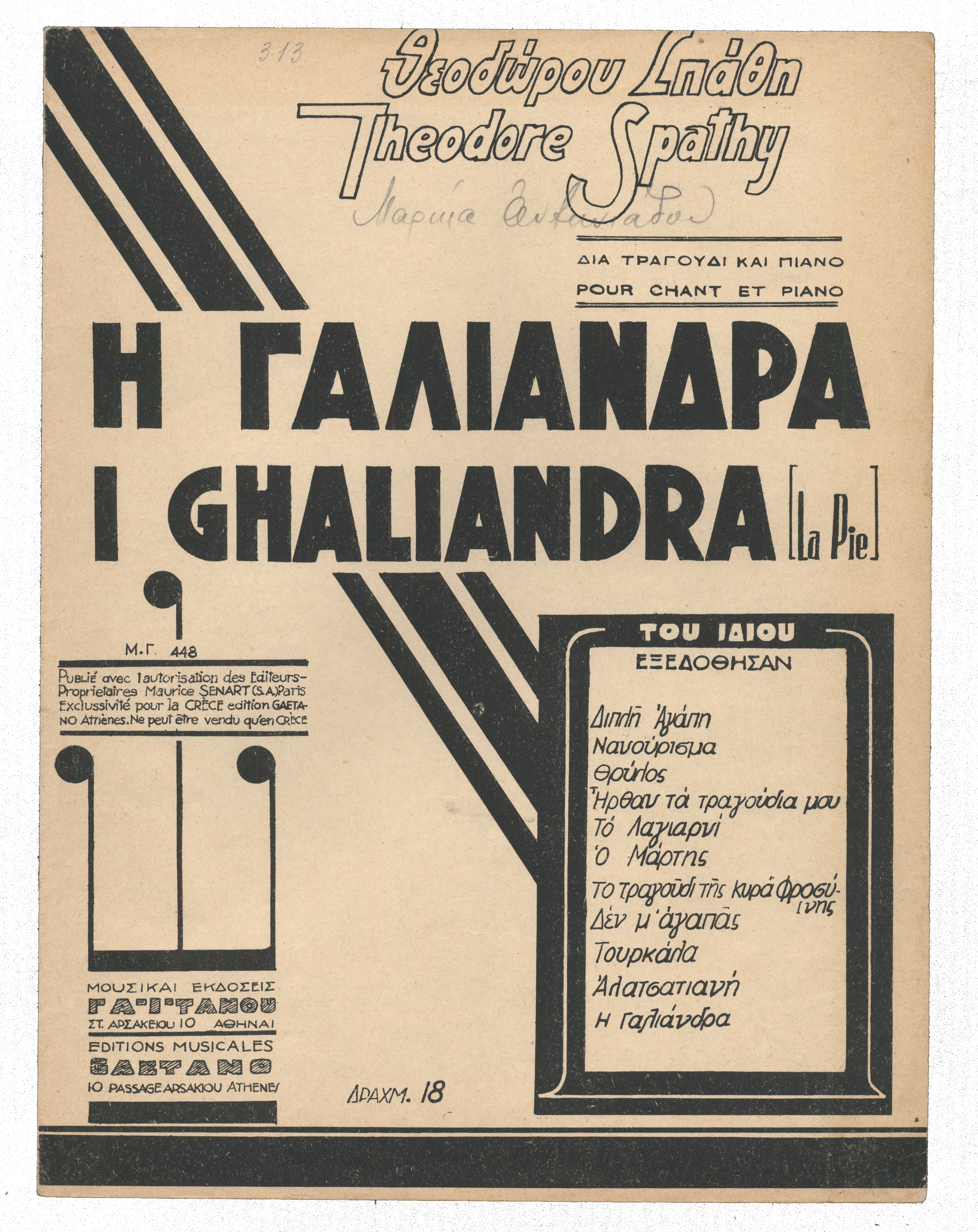 Εναρμόνιση και ενορχήστρωση Σπάθης, Θεόδωρος / Γαλλικοί στίχοι T. S.