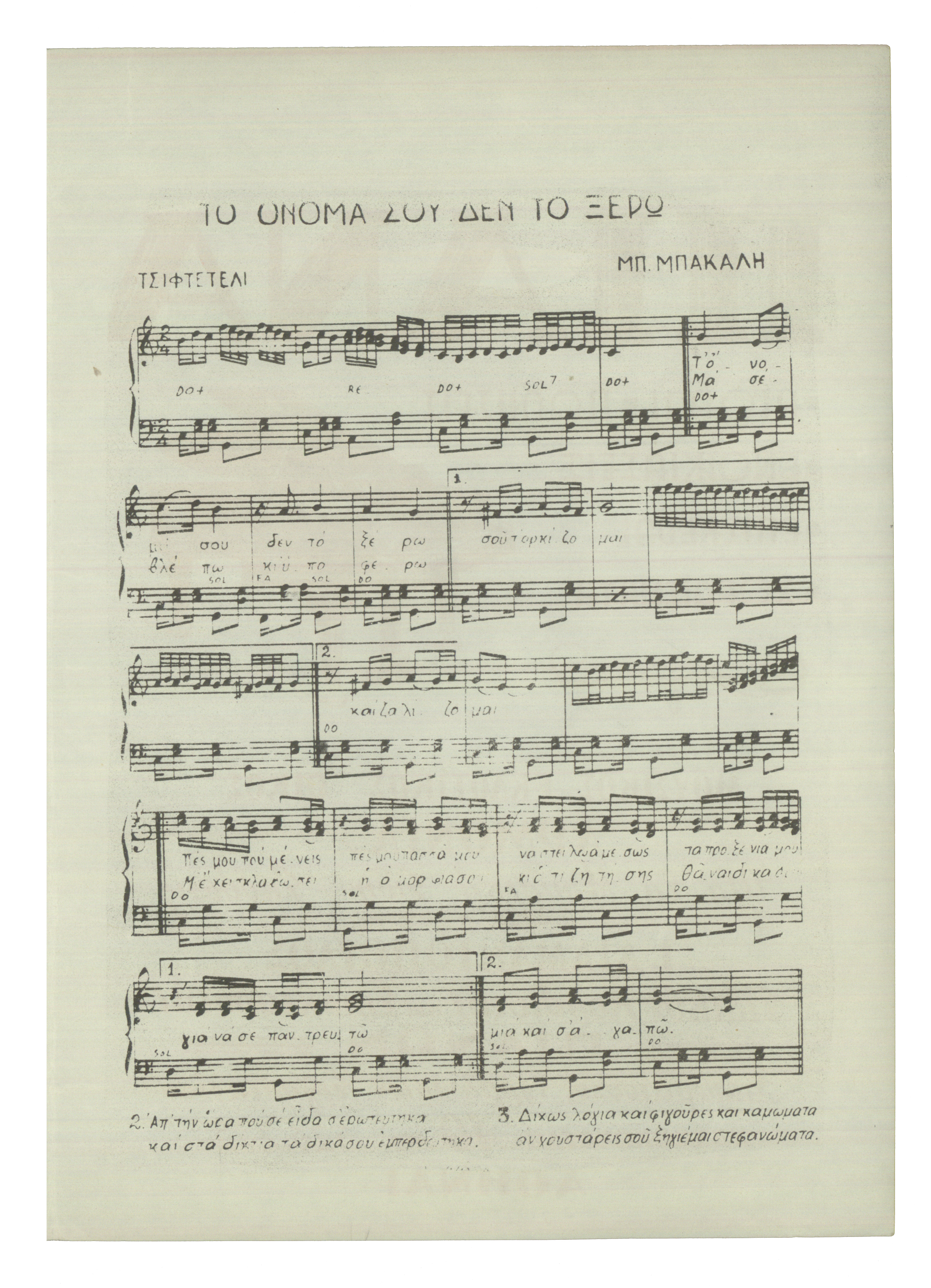 Τ` όνομα σου δεν το ξέρω σου το ορκίζομαι