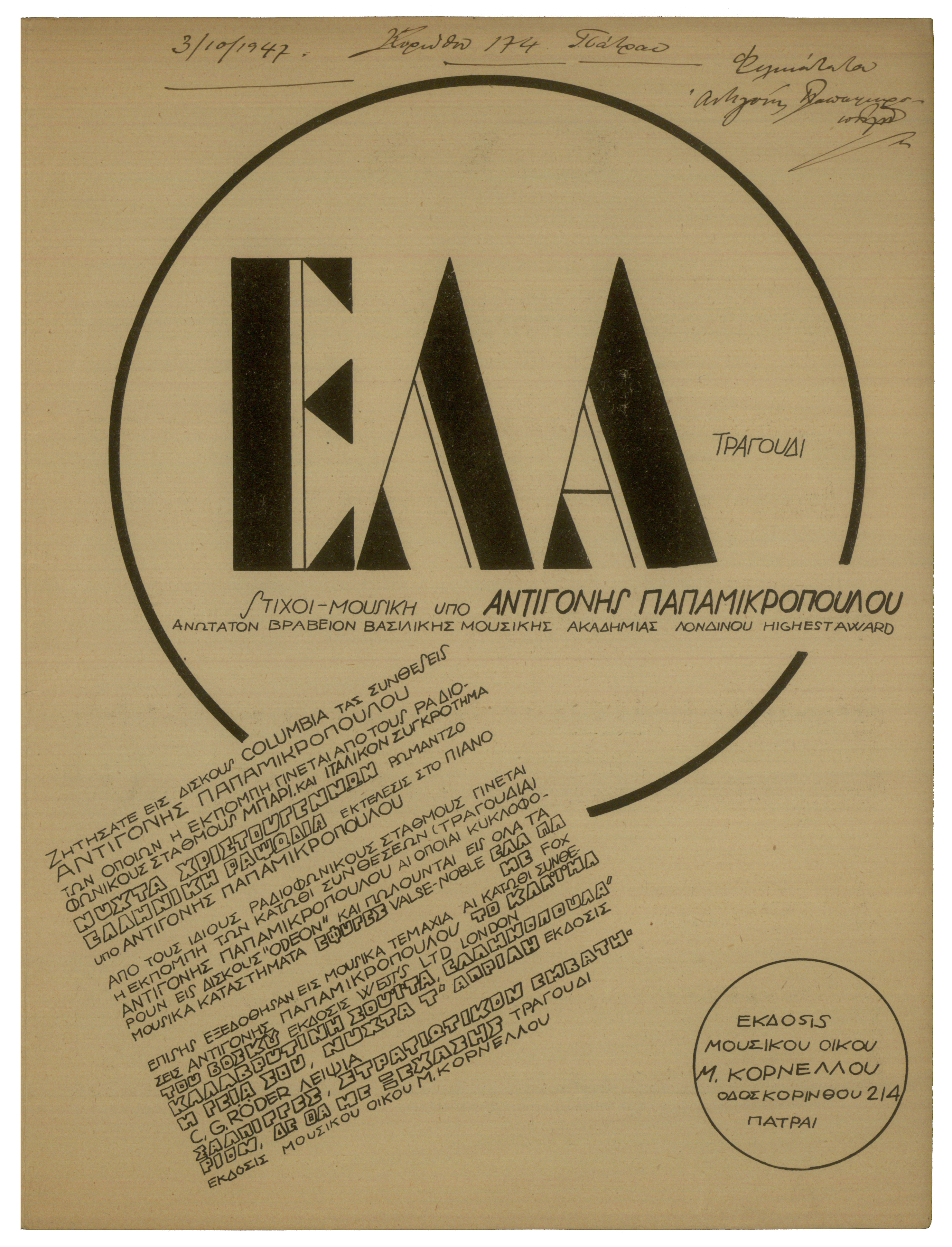 Στο εξώφυλλο υπάρχει η υπογραφή του συνθέτη. Ανώτατον βραβείον Βασιλικής Μουσικής Ακαδημίας Λονδίνου Highest Award
