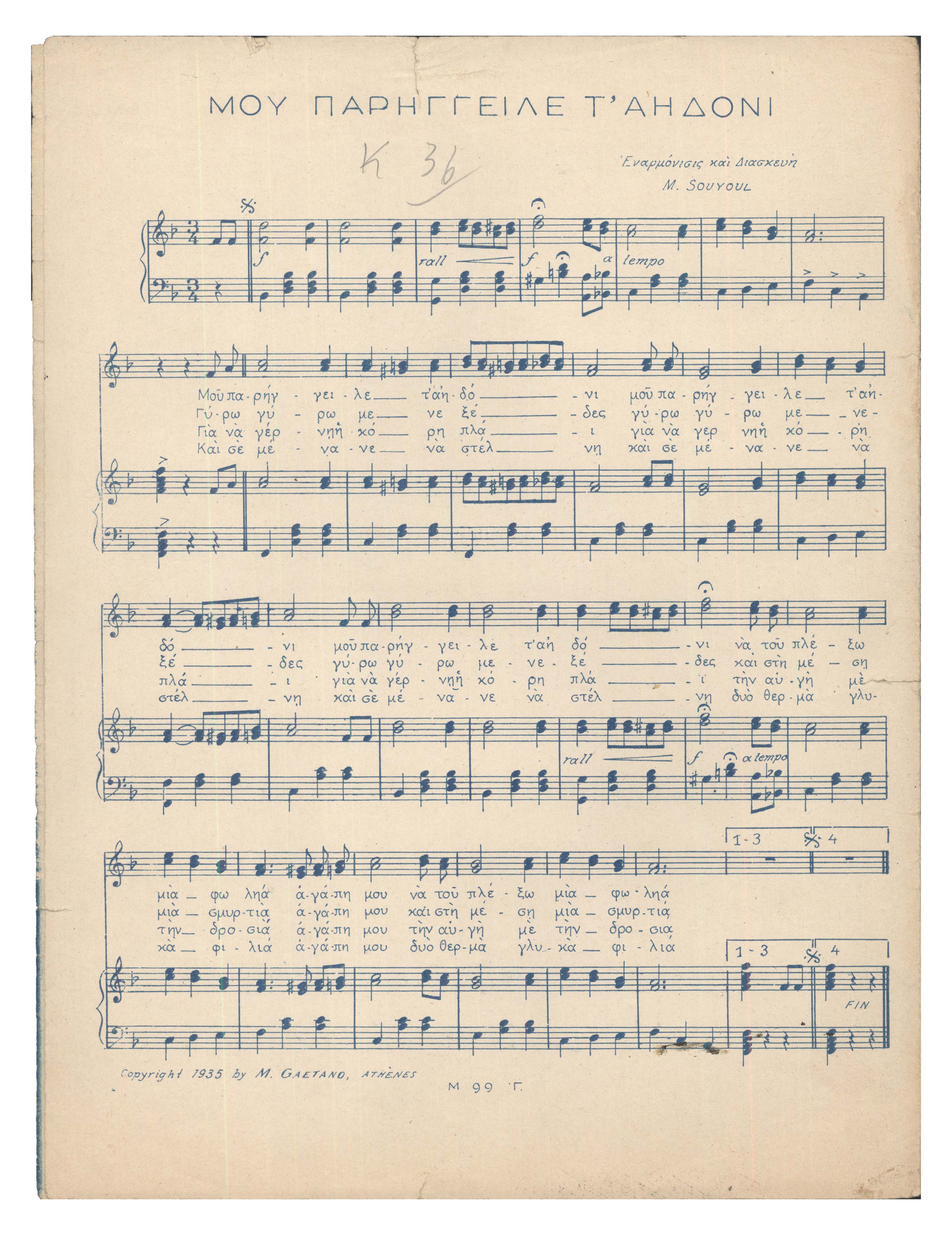 Μου παρήγγειλε τ` αηδόνι μου παρήγγειλε τ` αηδόνι