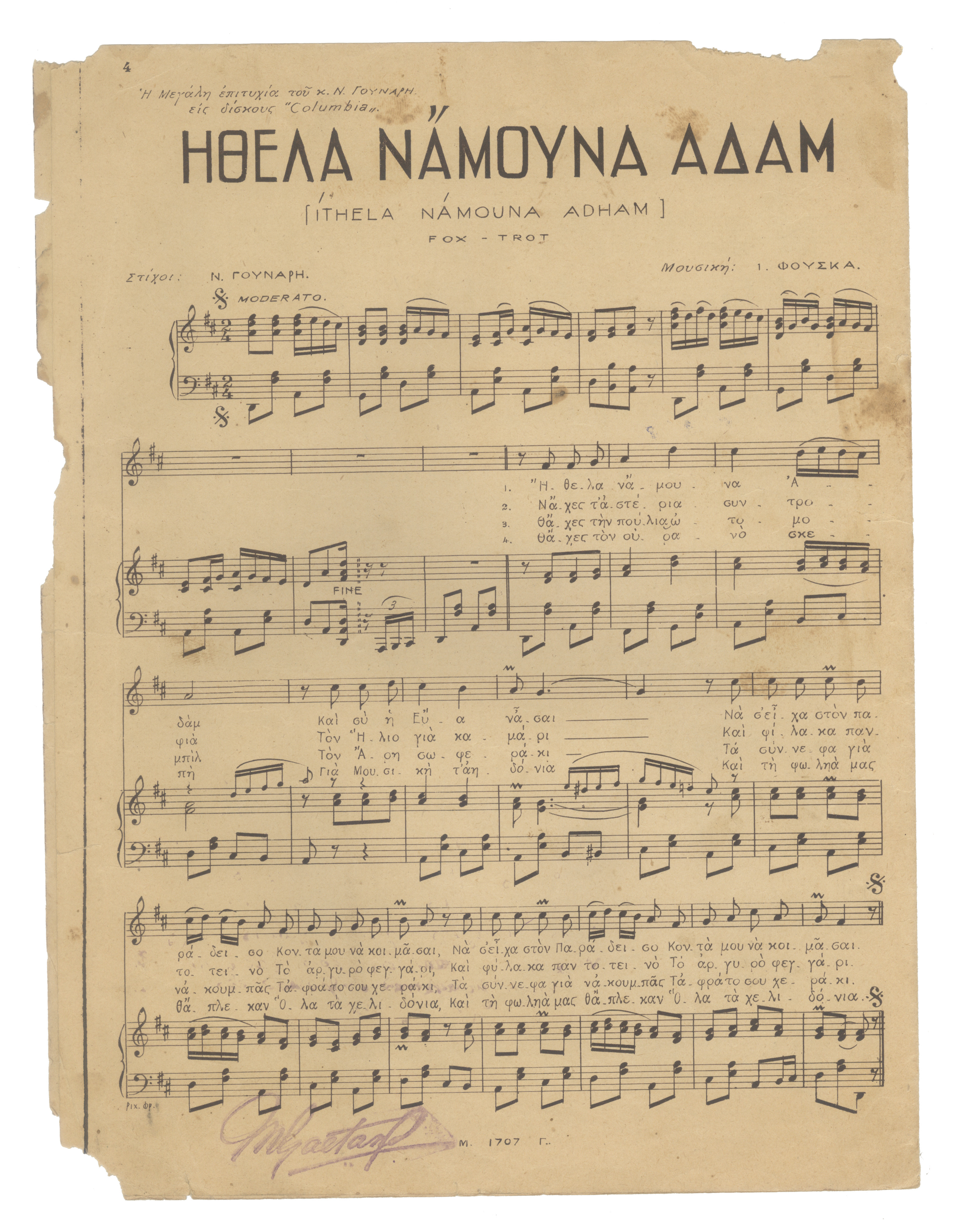 Fox - Trot (Το τραγούδι υπάρχει σε τρία αντίτυπα και περιλαμβάνεται στο δίφυλλο " Μάτια Σπανιόλικα" του Βέλλα Γιάννη)
