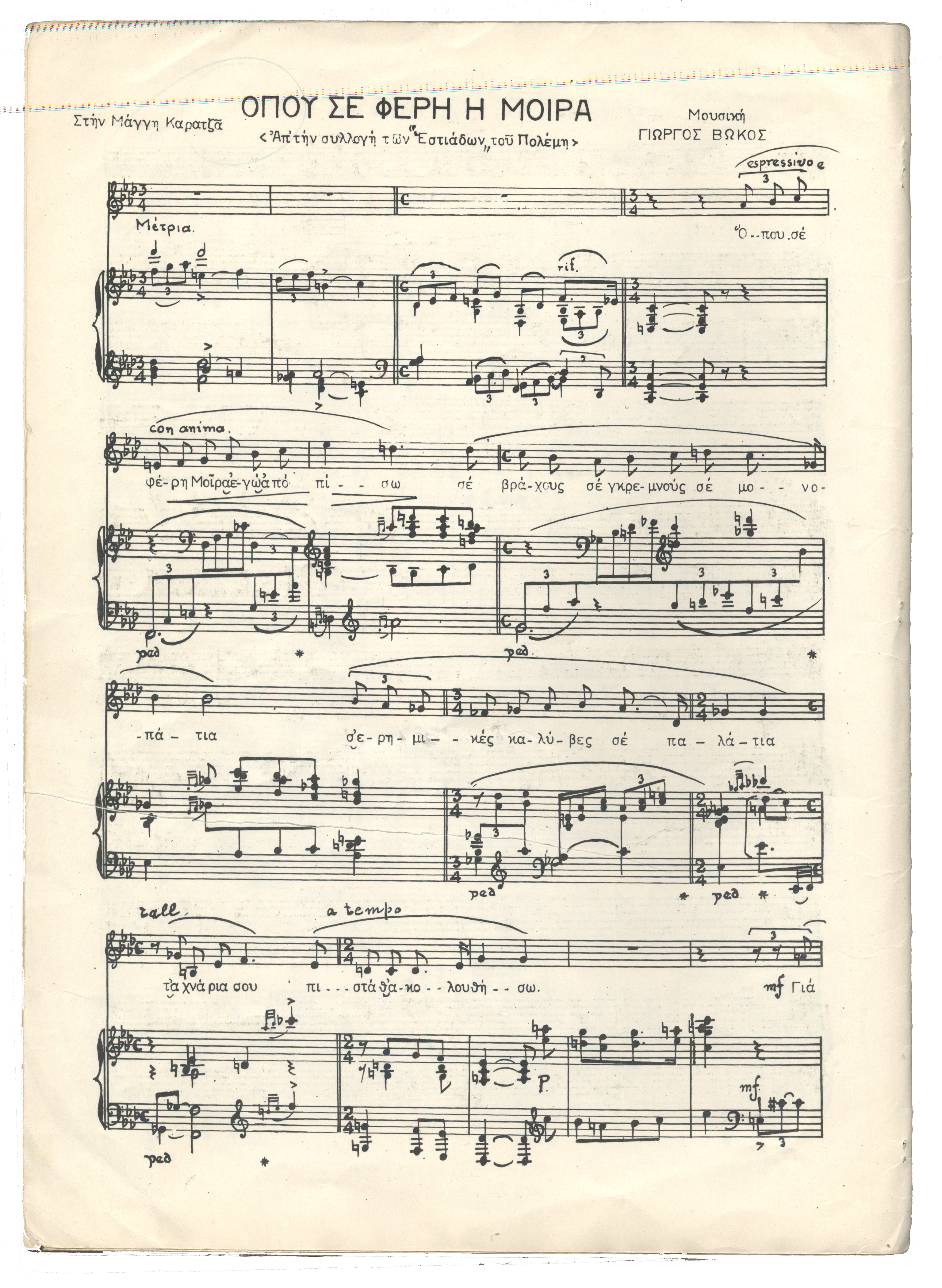 Oι στίχοι προέρχονται από την συλλογή των "Εστιάδων" του Πολέμη.